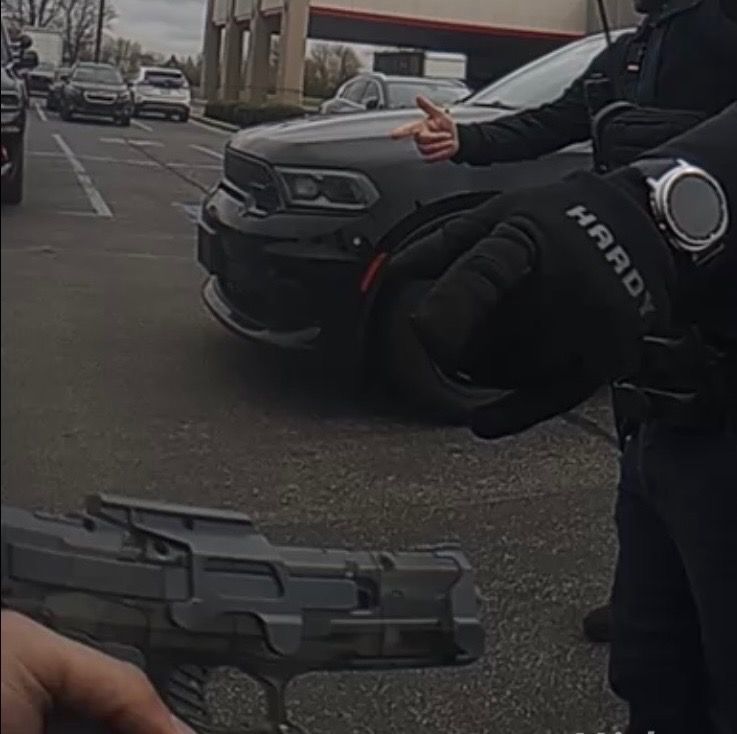 Investigators say an object resembling a firearm was located on the passenger seat of the vehicle. It was later identified as an opaque gray water pistol equipped with a drum-style magazine, which police say appeared realistic from a distance.