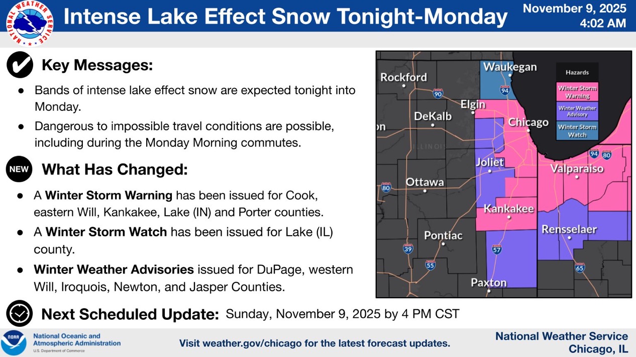 An intense lake effect snow event is set to impact northeastern Illinois and northwestern Indiana beginning late tonight through Monday.